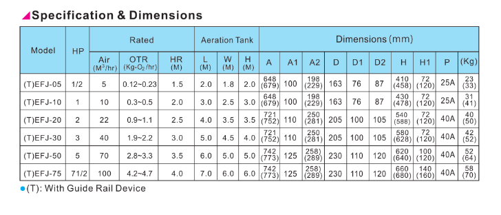 - Máy sục khí chìm Evergush model EFJ được thiết kế tạo ra tốc độ truyền Oxi cao dễ dàng loại bỏ BOD khỏi nước thải (BOD là một được hiểu nó là một dạng oxi cần thiết cho vi sinh vật để oxi hóa các chất hữu cơ trong nước thải. BOD có ý nghĩa biểu thị lượng các chất thải hữu cơ trong nước có thể bị phân huỷ bằng các vi sinh vật.)