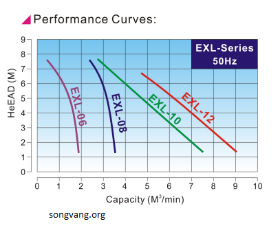 + Máy bơm chìm model EXL-06 và thông số kỹ thuật:
