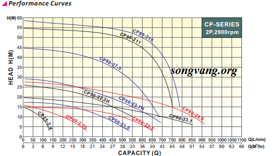 + Lưu lượng và cột áp của bơm trục ngang model CP(S)25-2.4.