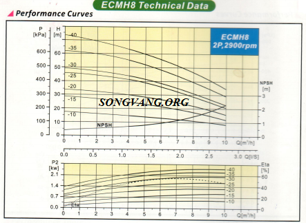 + Lưu lượng và cột áp của bơm ly tâm đa tầng cánh model ECMH8-15(T).