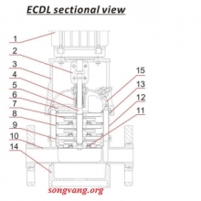 +Sơ đồ cấu tạo và vật liệu bơm trục đứng đa tầng cánh model ECDL2-6.