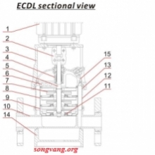 +Sơ đồ cấu tạo và vật liệu bơm trục đứng đa tầng cánh model ECDL2-7.