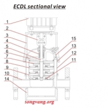 +Sơ đồ cấu tạo và vật liệu bơm trục đứng đa tầng cánh model ECDL2-18.