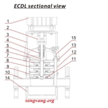+Sơ đồ cấu tạo và vật liệu bơm trục đứng đa tầng cánh model ECDL2-26.