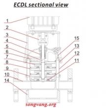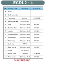 +Sơ đồ cấu tạo và vật liệu bơm trục đứng đa tầng cánh model ECDL4-2.