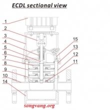 +Sơ đồ cấu tạo và vật liệu bơm trục đứng đa tầng cánh model ECDL4-5.
