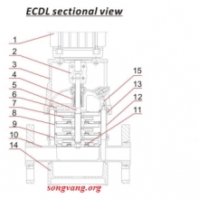 +Sơ đồ cấu tạo và vật liệu bơm trục đứng đa tầng cánh model ECDL4-19.