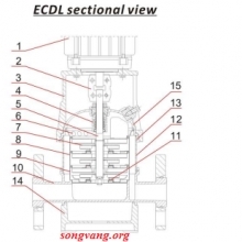 +Sơ đồ cấu tạo và vật liệu bơm trục đứng đa tầng cánh model ECDL4-22.