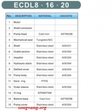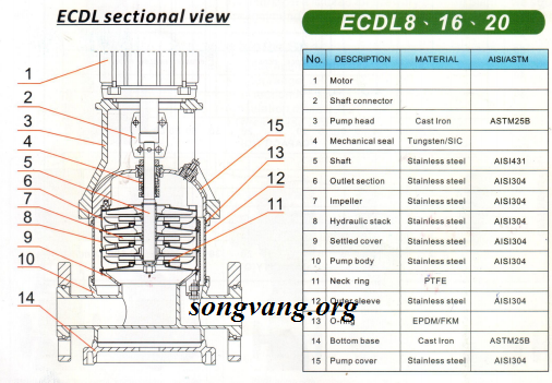 +Sơ đồ cấu tạo và vật liệu bơm trục đứng đa tầng cánh model ECDL8-1.