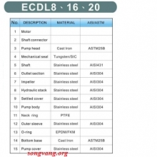 +Sơ đồ cấu tạo và vật liệu bơm trục đứng đa tầng cánh model ECDL8-2.