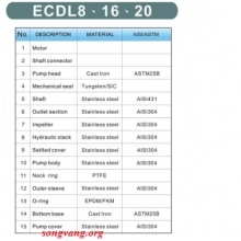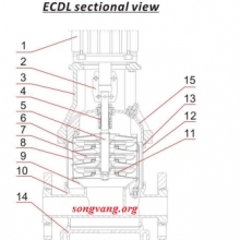 +Sơ đồ cấu tạo và vật liệu bơm trục đứng đa tầng cánh model ECDL8-5.