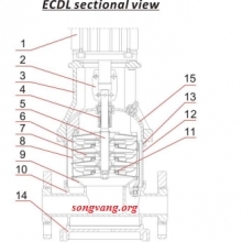 +Sơ đồ cấu tạo và vật liệu bơm trục đứng đa tầng cánh model ECDL8-6.