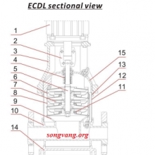 +Sơ đồ cấu tạo và vật liệu bơm trục đứng đa tầng cánh model ECDL8-22.