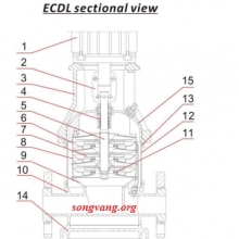 +Sơ đồ cấu tạo và vật liệu bơm trục đứng đa tầng cánh model ECDL16-12.