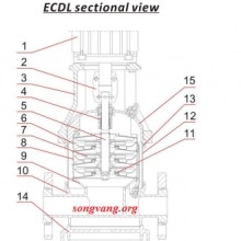 +Sơ đồ cấu tạo và vật liệu bơm trục đứng đa tầng cánh model ECDL16-16.