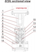 +Sơ đồ cấu tạo và vật liệu bơm trục đứng đa tầng cánh model ECDL32-3.