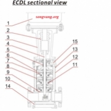 +Sơ đồ cấu tạo và vật liệu bơm trục đứng đa tầng cánh model ECDL32-10-2.