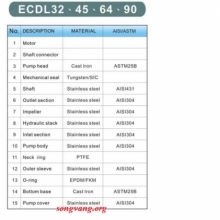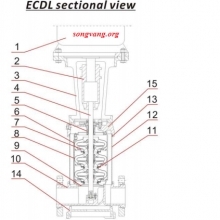 +Sơ đồ cấu tạo và vật liệu bơm trục đứng đa tầng cánh model ECDL45-9-2.
