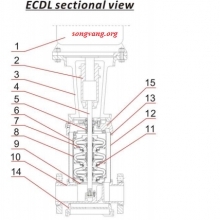 +Sơ đồ cấu tạo và vật liệu bơm trục đứng đa tầng cánh model ECDL45-10-2.
